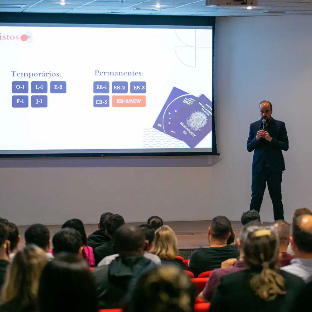Foi uma experiência melhor do que eu esperava. O conteúdo surpreendeu, pois pensava que seria menos abrangente e técnico, focado em documentos para o visto. O palestrante domina muito bem a matéria, e se vê que a empresa está preparada! Gostei muito.